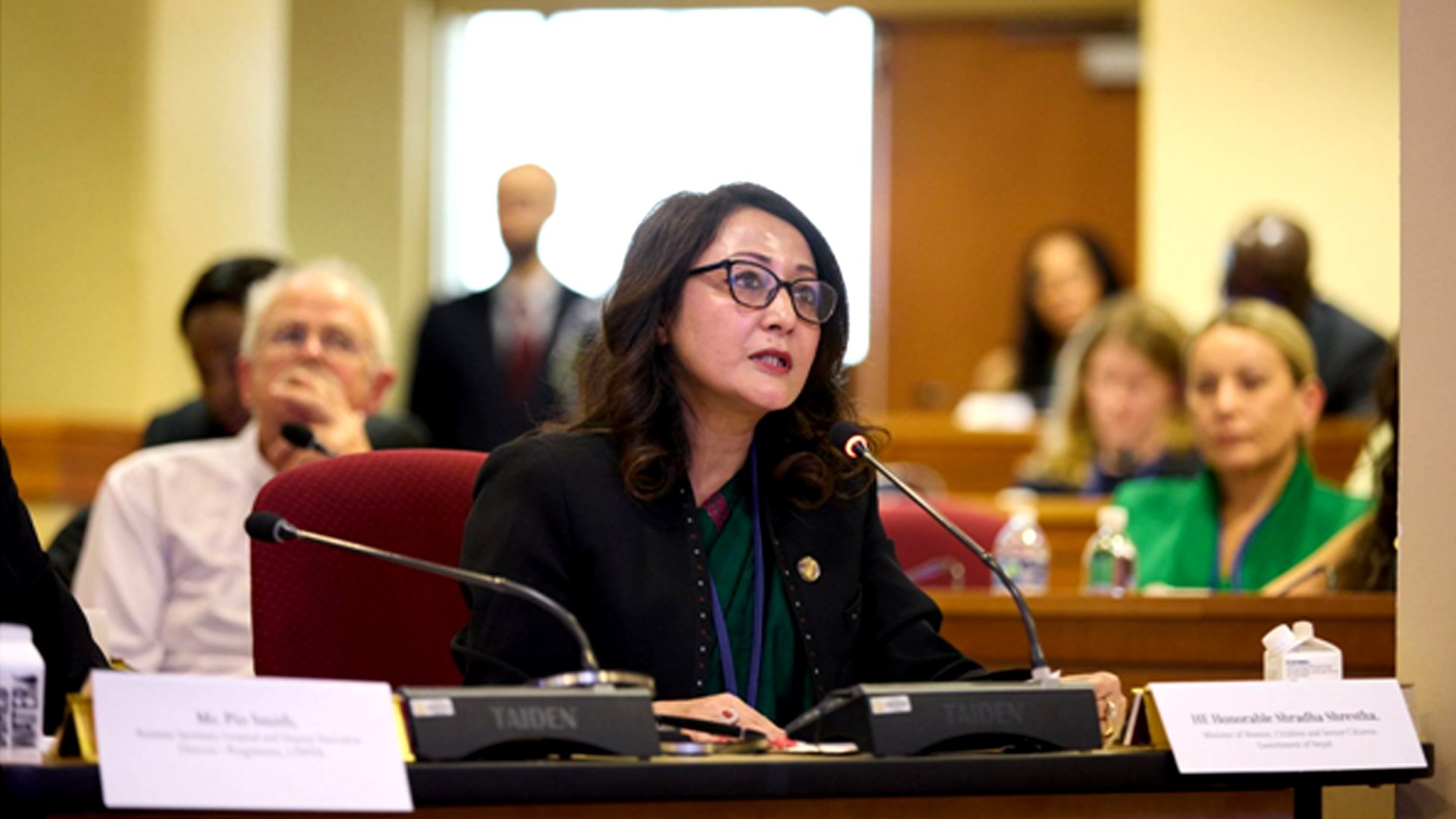 नेपालले उक्त प्रतिबद्धतालाई संविधानमा सुनिश्चित गरेको उल्लेख गर्दै मन्त्री श्रेष्ठले महिलामाथि हुने सबै प्रकारका विभेद् उन्मूलनसम्बन्धी महासन्धिलगायत अन्तरराष्ट्रिय दायित्व पनि निभाइएको जानकारी दिनुभयो । उहाँले नेपालले घरेलु हिंसा, हानिकारक परम्परा, बालविवाह, मानव बेचबिखन तथा यौन दुव्र्यवहारलाई अपराधका रूपमा घोषणा गरी अपराध गर्नेलाई कानुनी दायरमा ल्याउन कानुन निर्माण गरिसकेको जानकारी दिनुभयो ।